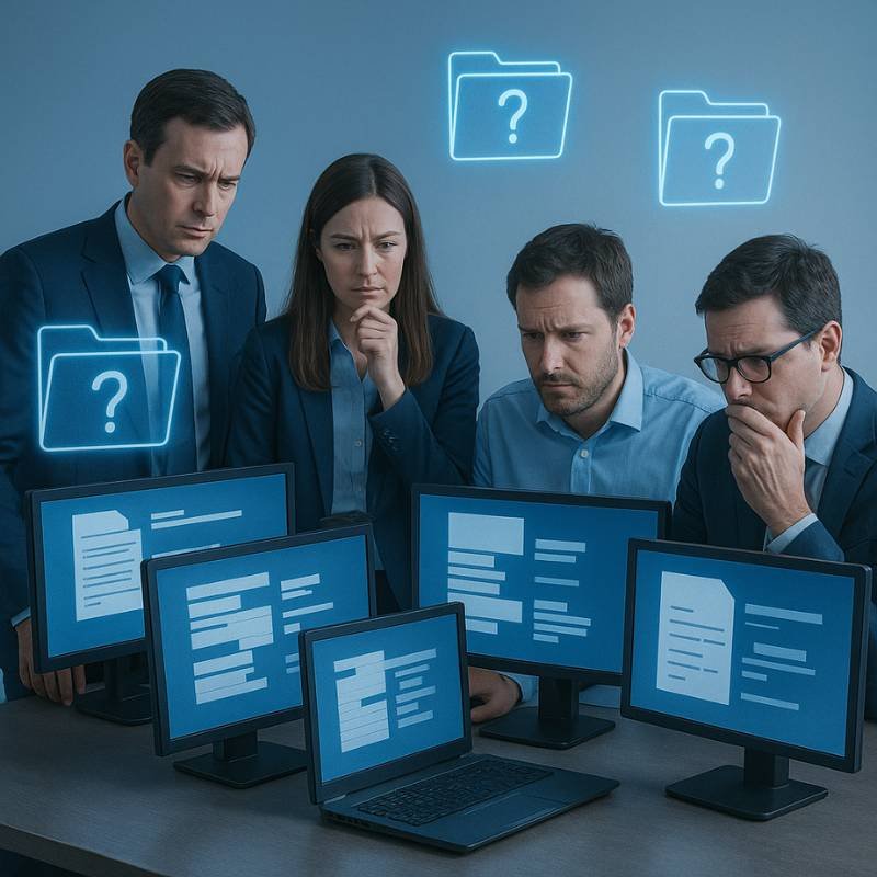 Arquivos incompletos ou desatualizados travam processos internos e externos, impactando diretamente prazos e cronogramas.