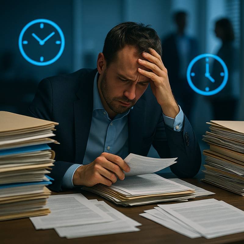 Sem visibilidade e controle, documentos acumulados aumentam os riscos de erros, prazos perdidos e retrabalho constante.